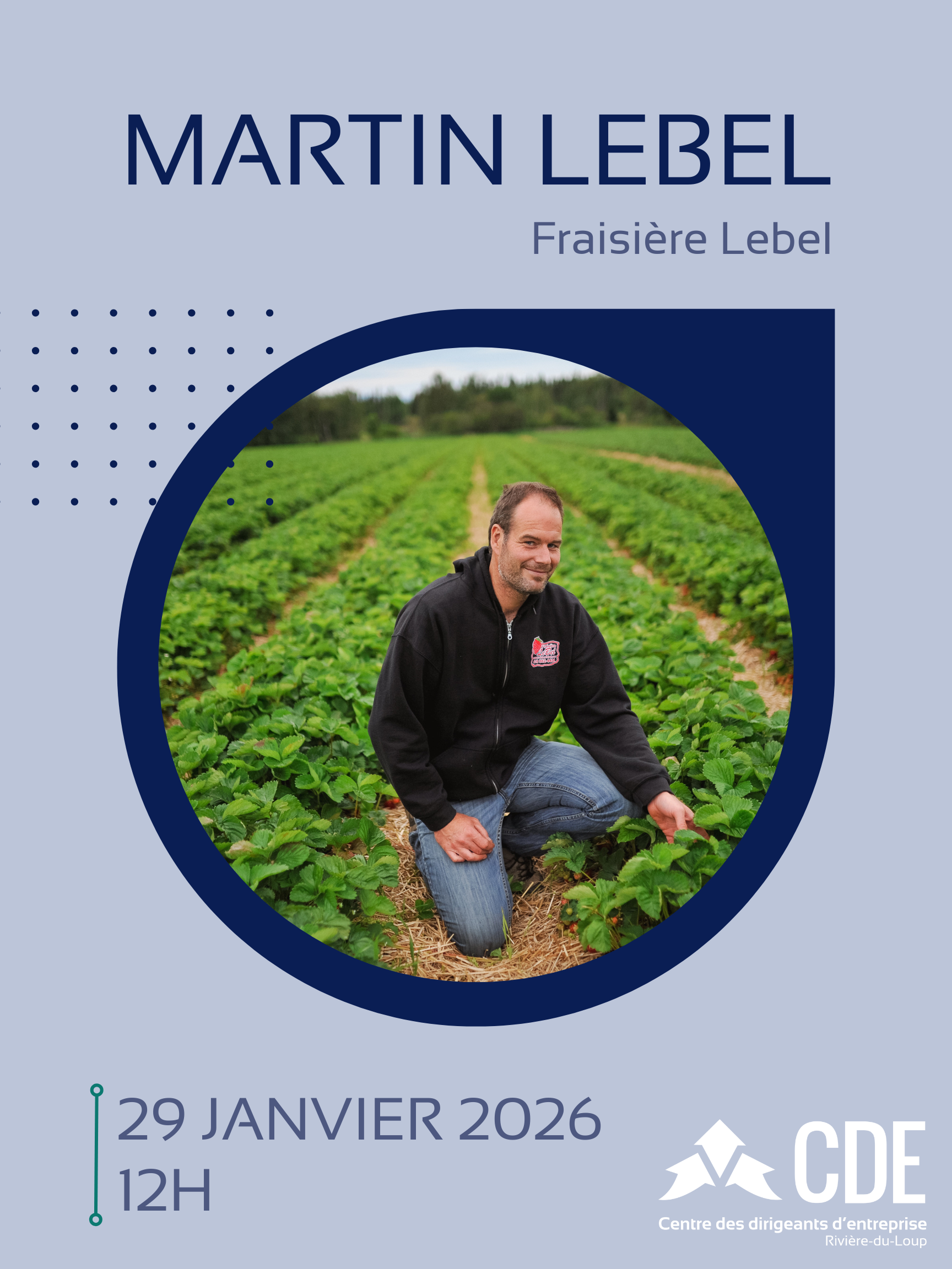 Lors de notre activité de janvier, nous aurons le privilège d’accueillir Martin Lebel, de Fraisière LeBel, pour un dîner-conférence axé sur le parcours humain et entrepreneurial. À travers son histoire, il partagera les succès, les embûches, les inspirations et les réalisations qui ont marqué son chemin, offrant un moment d’échange authentique et inspirant pour les dirigeants.